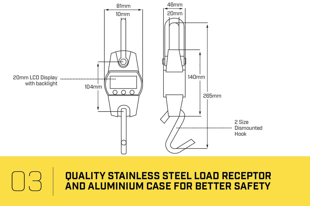 This mini 300kg crane scale offers the user a simple and easy method to weigh goods in lifting / tension application.