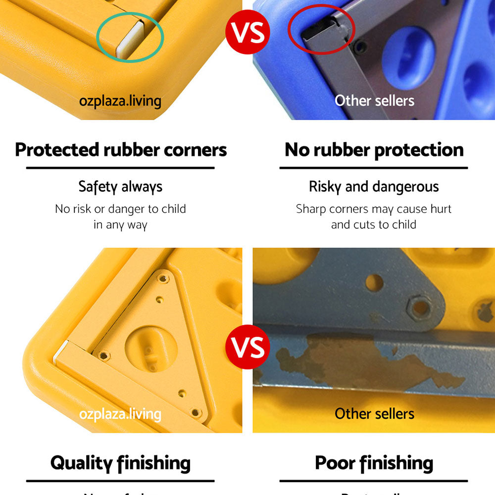 Naturally, everything about the Set is designed child-safe to EN71 European Safety of Toys standards. Round and smooth edges. Upgraded protected rubber corners. No toxic paint finishes. And a very eco-friendly ensemble. Better still, the Table can be adjusted above its standard 50cm height by up to 3cm more. That means the Table can literally 'grow' with your kids and their BFFs. How good is that!