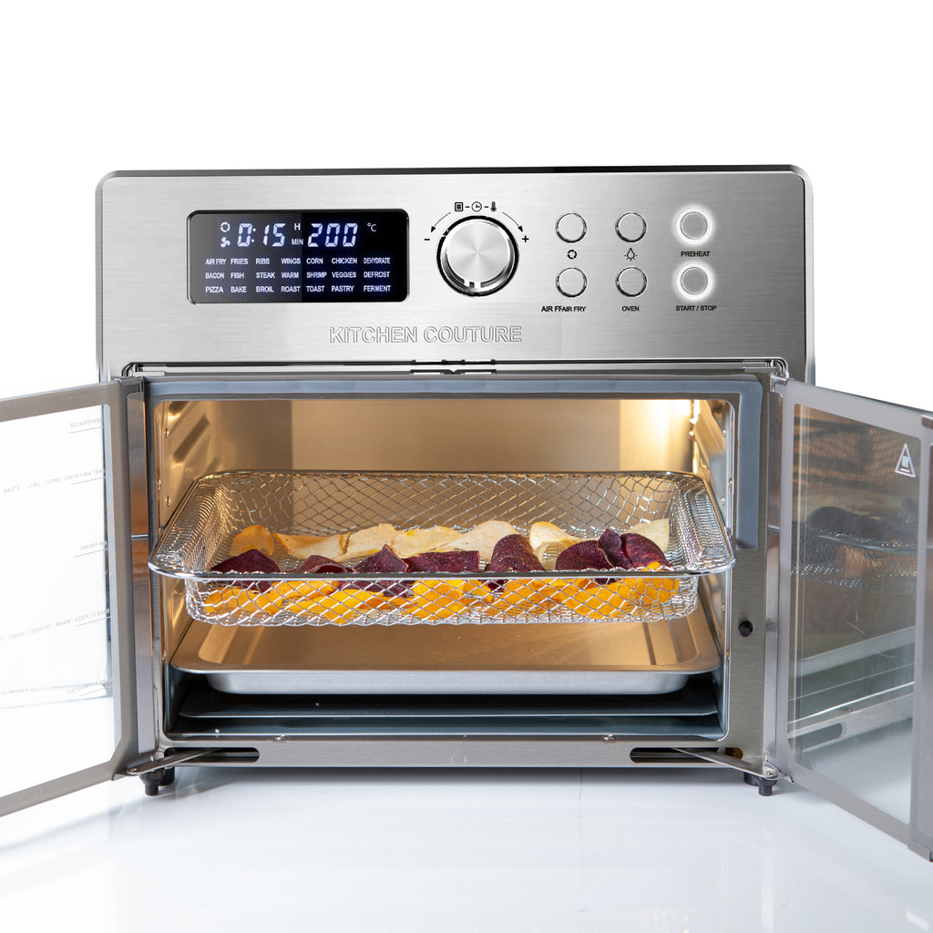 With a large 25 litre capacity, this fabulous French door Kitchen Couture Air Fryer Oven is multifunctional and offers intuitive manual temperature and time controls that are easy to use.