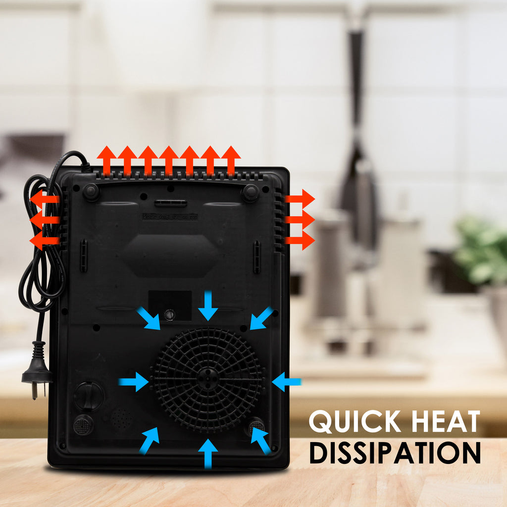 Its energy and time-efficient induction technology keeps heat directly focused on the cooktop reaching high temperature faster. By using a combination of digital frequencies and magnetic fields, an induction cooker produces no flames, smoke or pollution.