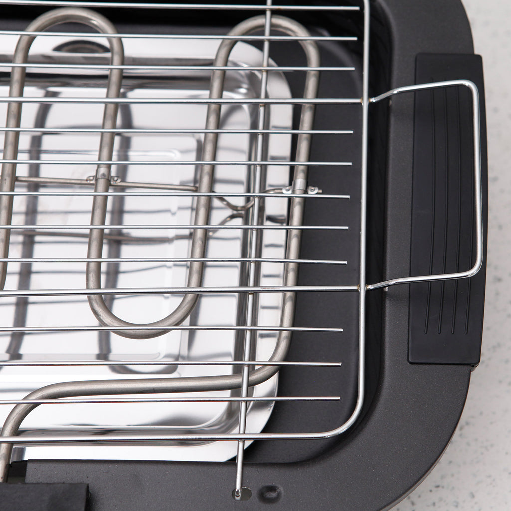 This grill features 2 height levels for personalized cooking and thermostat control for ease of use and convenience.