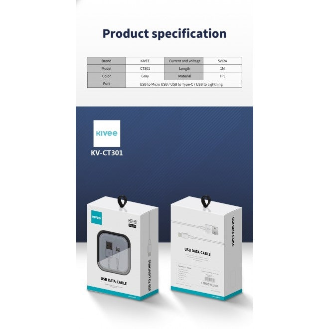 1x KIVEE CT301 iPhone 8-pin Charging Cable 1M