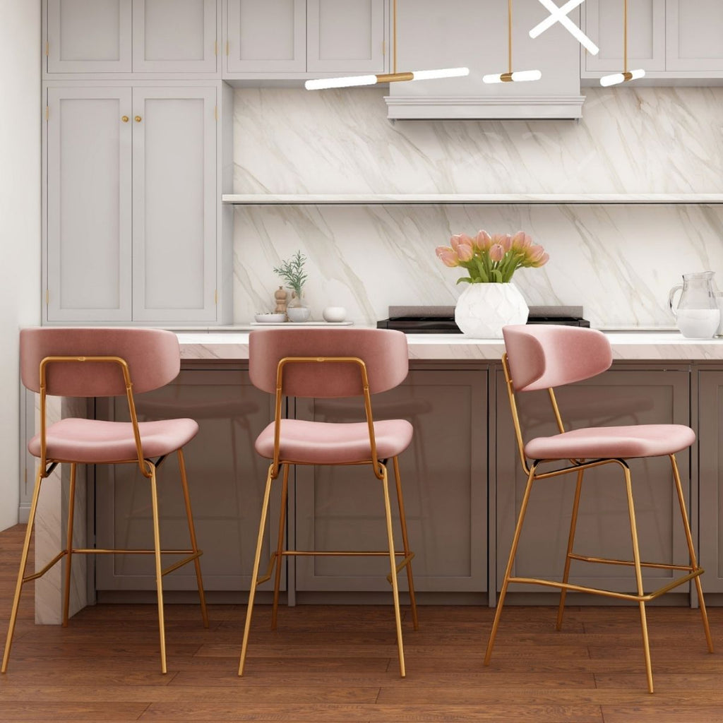 The Barstool can instantly transform your kitchen benchtop or table bar setting with its modern and sophisticated looks. The fine metal framework, graceful lines and rounded bends evoke a refined aesthetic. It's also beautifully upholstered in velvet for a smooth and comfy seating experience. Take your pick among our on-trend colours with Blush and Sapphire Grey or go for a timeless neutral with our Slate Gray variant for a classy upgrade.