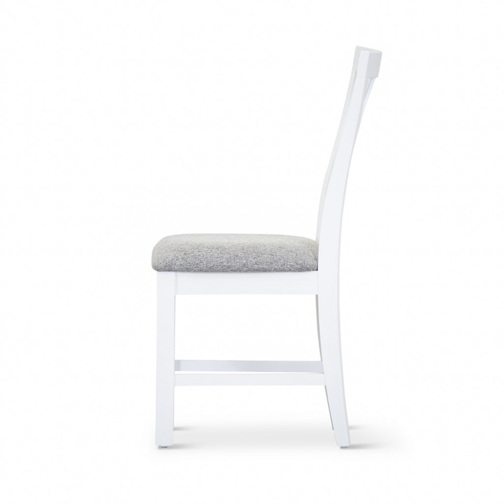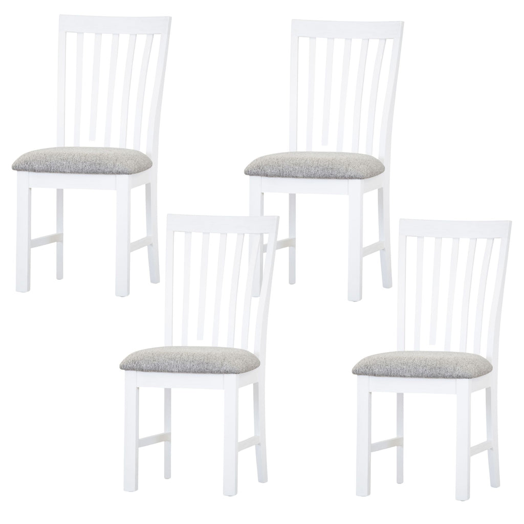This beautifully designed 4-piece dining chair set is composed of sustainably sourced Solid Acacia and MDF. The wood ensures the strength and durability of the chairs for years to come. The chairs are angled just at the right places to maximize their clean line aesthetics that decorate the dining area brilliantly.Designed in the coastal style, the chairs feature a minimalist, functional, and contemporary design. Due to the vivid white colour, the chairs exude a serene feel in the atmosphere, which helps in creating truly joyful moments with family and friends. The chairs have thick front legs and beautifully tapered back legs. The chair is exceptionally comfortable as its seat is upholstered in 100% polyester fabric. The set of chairs comes with a one-year warranty.