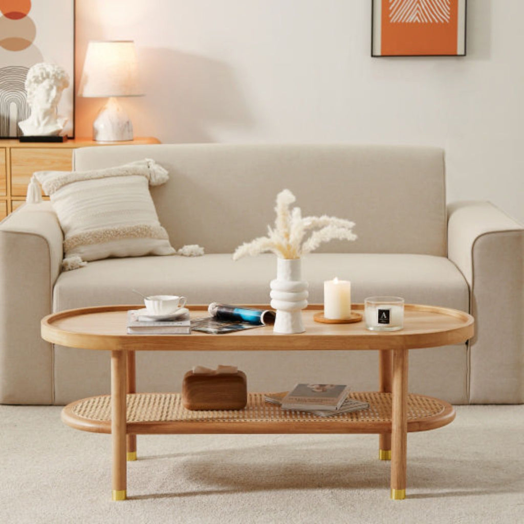 With its curvy Deco silhouette and nostalgic rattan accents, the Lauren coffee table is a nod to the elegance and hospitality of times gone by. It will fit seamlessly in coastal, boho, or Mid-century homes.