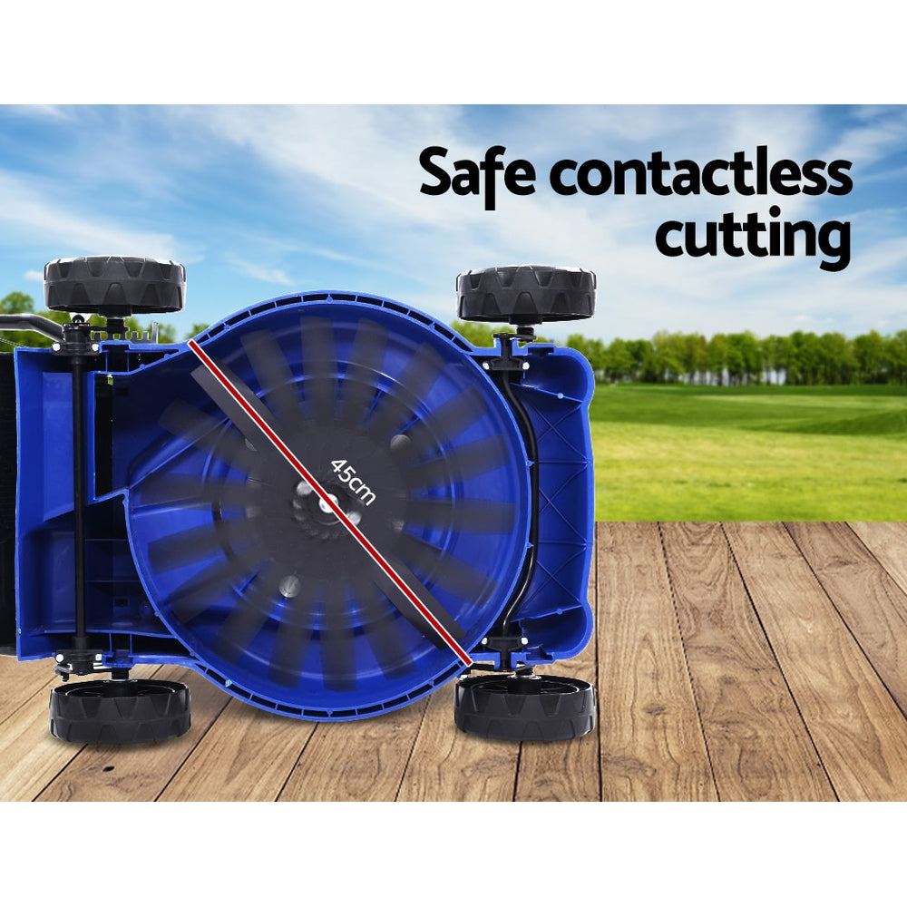 Want a clean-cut lawn? With our highly efficient petrol lawn mower, you can knock off your yard jobs without working up a sweat. It can be a great addition to your garden shed as it is simple to start and can give your lawn a perfect cut. This petrol lawn mower has seven height adjustments that allow you to set your desired lawn cutting height with the side adjusting bar, and the adjustable handle lever ensures better control and compact storage. With its 139cc 4-stroke engine, the petrol lawn mower provides sufficient power for small to medium lawns. Plus, its 2-in-1 capability features a large 40L catcher bag and rear discharge so that you can keep mowing without stopping to unload. Furthermore, this mower is designed for unhindered manoeuvrability and has a soft-grip handle. Not least, the superior Euro V engine complies with the latest emissions standard and is safe and environmentally friendly. For an effortless mowing experience, purchase our petrol lawn mower that is perfect for modest-sized lawns and certainly, a cut above the rest.