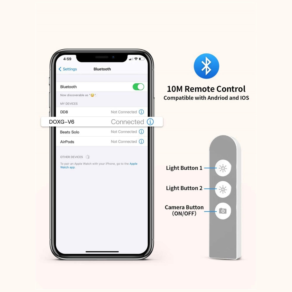 -Wireless Remote: With the remote control supports Bluetooth function. The Bluetooth remote allows you to take selfies or group photos easily from a distance of up to 10M. Compatible with most Apple/Android smartphones. the remote control makes it easier to take photos or videos.
