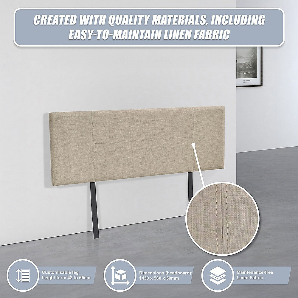 This headboard for standard Double-sized bed frames is created with quality materials, including easy-to-maintain Linen Fabric that will maintain its sophisticated look for many years to come. This particular model comes with elegant stitching accents that provide just the right level of understated pop. A neutral beige will blend seamlessly with a wide variety of bed frames and other bedroom furniture.