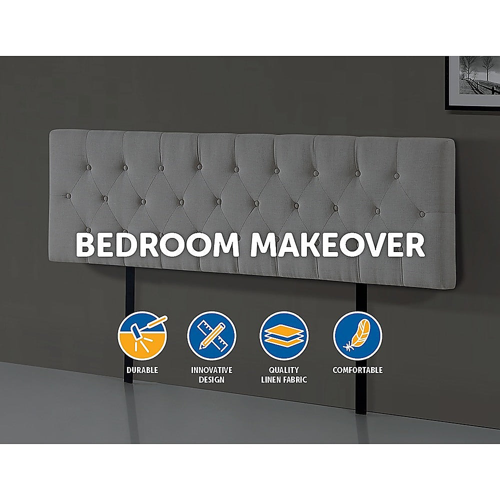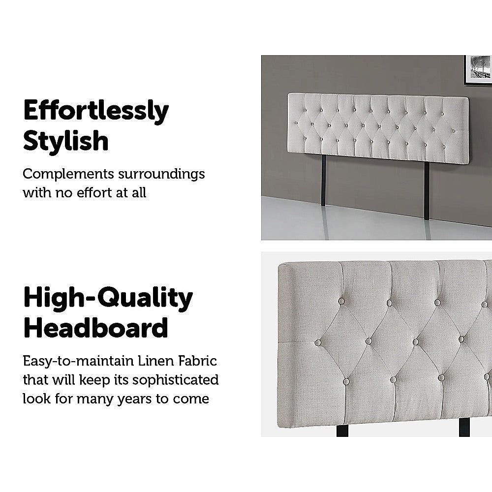 This headboard for standard King-sized bed frames is created with quality materials, including easy-to-maintain Linen Fabric that will maintain its sophisticated look for many years to come. This particular model comes with elegant stitching accents that provide just the right level of understated pop. A neutral beige will blend seamlessly with a wide variety of bed frames and other bedroom furniture.