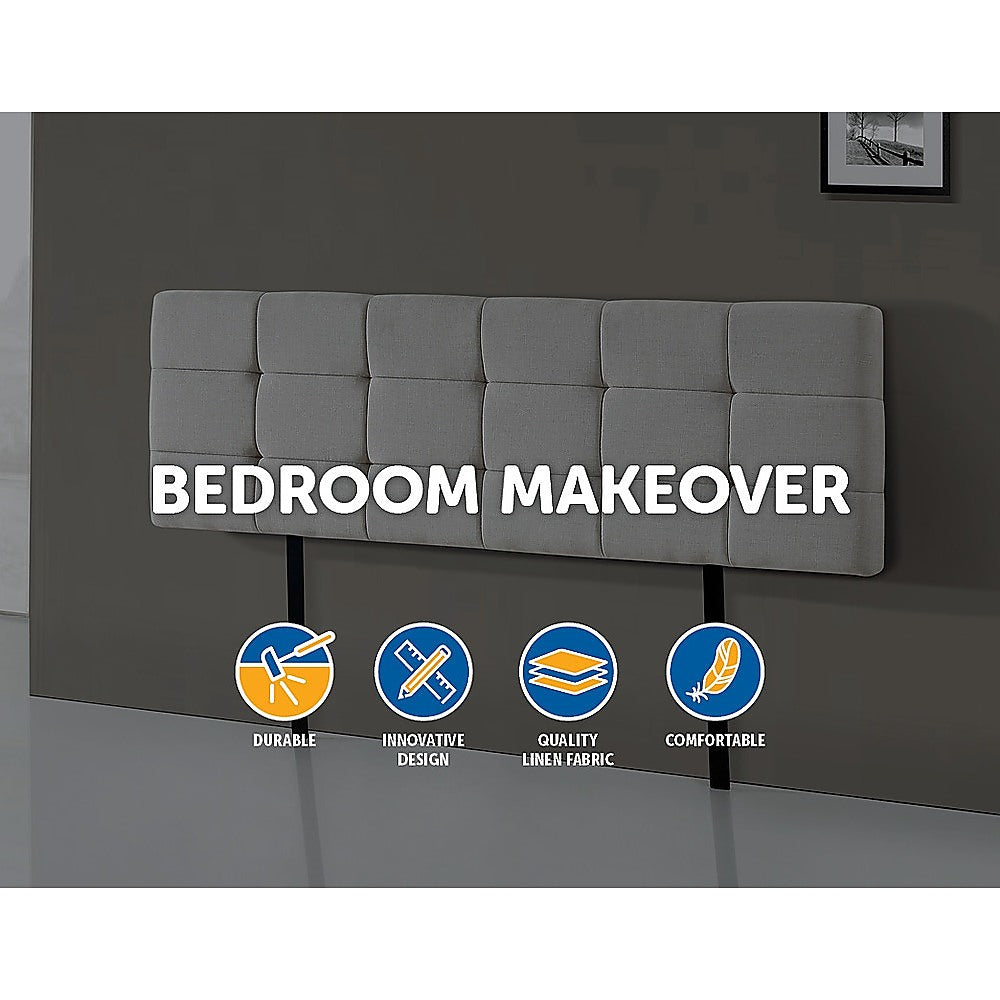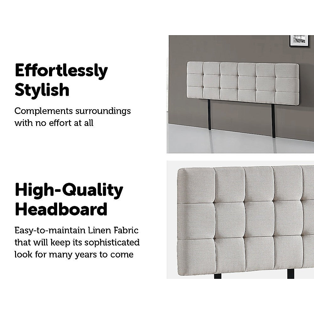 This headboard for standard King-sized bed frames is created with quality materials, including easy-to-maintain Linen Fabric that will maintain its sophisticated look for many years to come. This particular model comes with elegant stitching accents that provide just the right level of understated pop. A neutral beige will blend seamlessly with a wide variety of bed frames and other bedroom furniture.