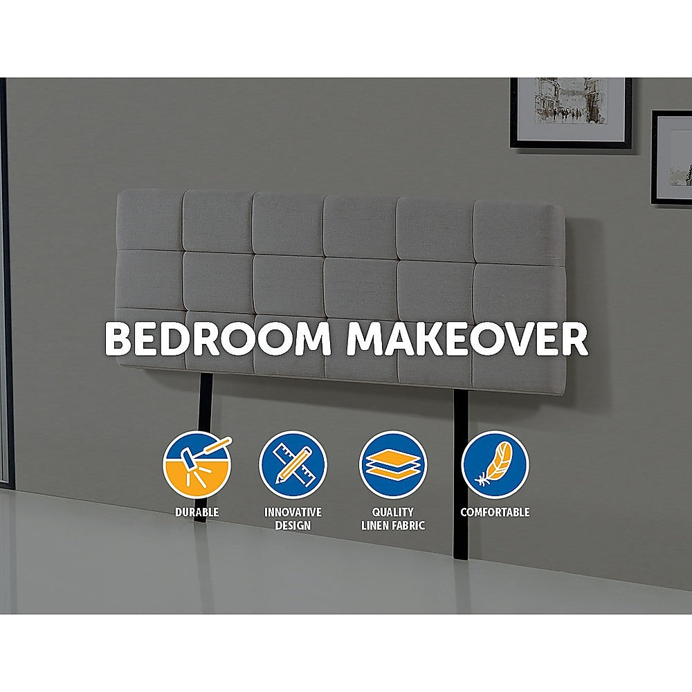 This headboard for standard Queen-sized bed frames is created with quality materials, including easy-to-maintain Linen Fabric that will maintain its sophisticated look for many years to come. This particular model comes with elegant stitching accents that provide just the right level of understated pop. A neutral beige will blend seamlessly with a wide variety of bed frames and other bedroom furniture.