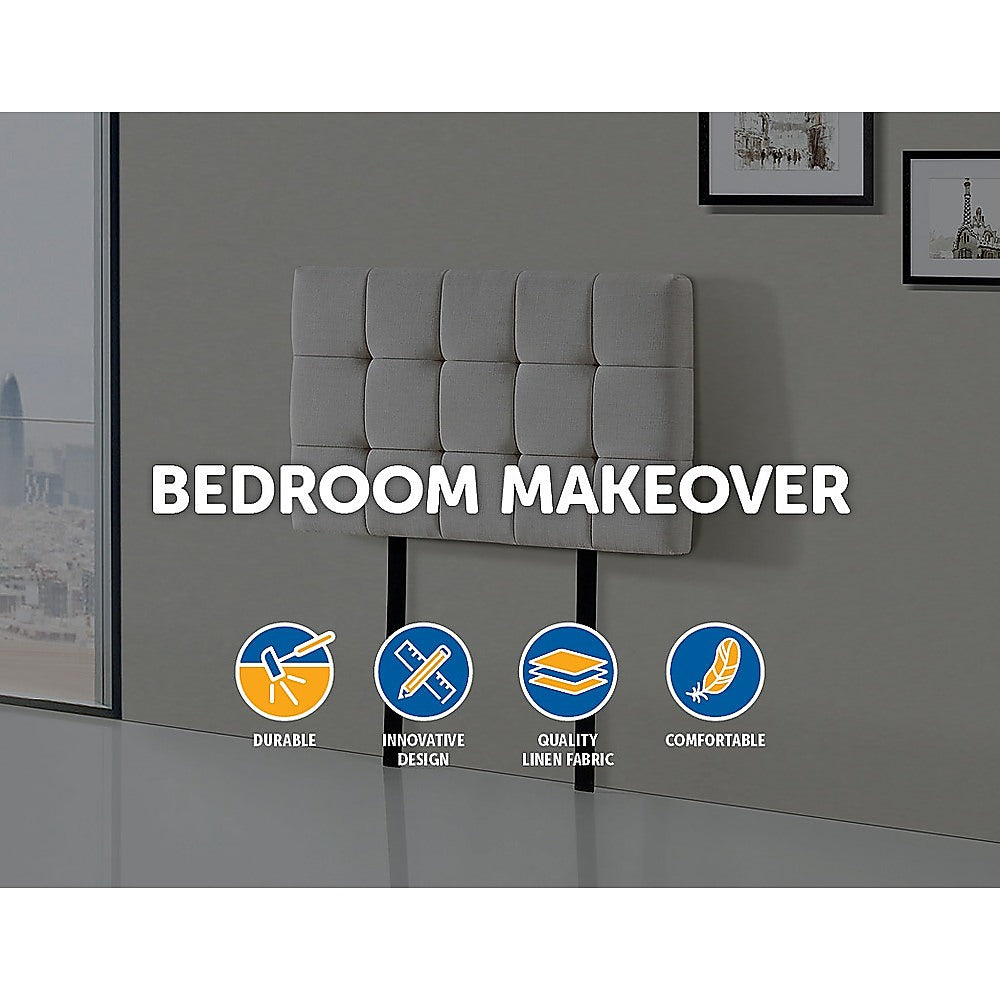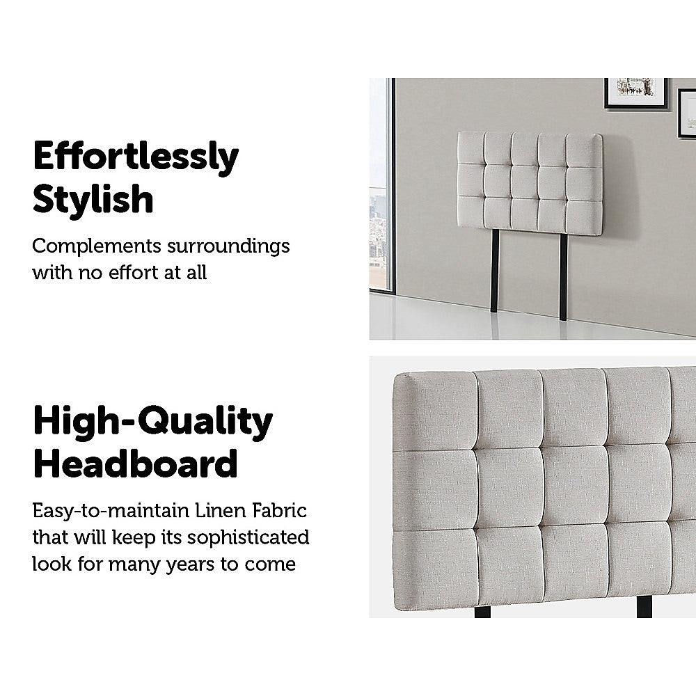 This headboard for standard Single-sized bed frames is created with quality materials, including easy-to-maintain Linen Fabric that will maintain its sophisticated look for many years to come. This particular model comes with elegant stitching accents that provide just the right level of understated pop. A neutral beige will blend seamlessly with a wide variety of bed frames and other bedroom furniture.