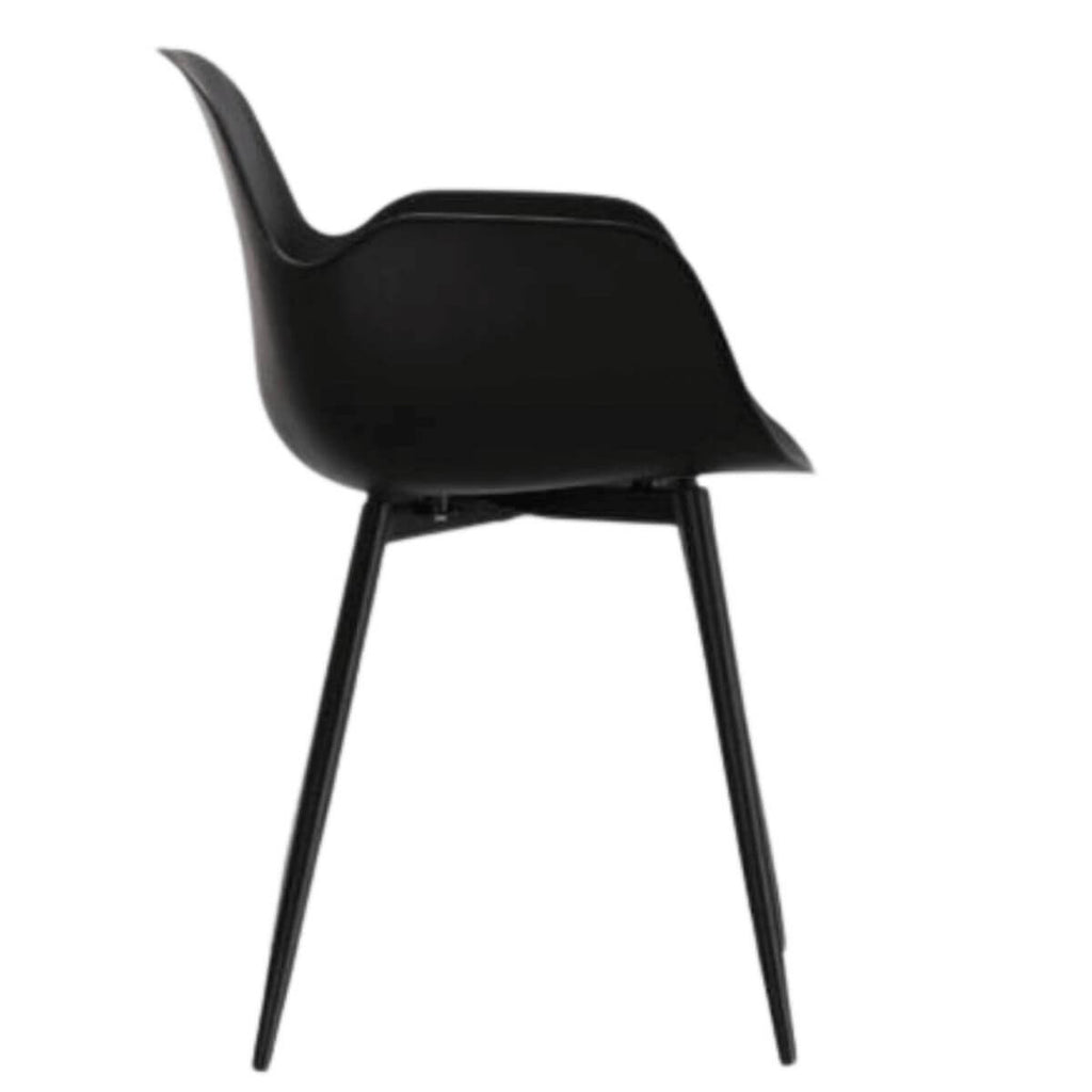 Featuring a simple mould design, organic shape and tapered legs, it's a chair designed with the mid-century flair and modern sensibilities in mind. Lightweight yet durable, this chair also boasts a curved shape and arm rests for added comfort. The Mid-Century Modern design Dining Chair will never fall out of style, with black and neutral colour options that blend well with any design or décor.