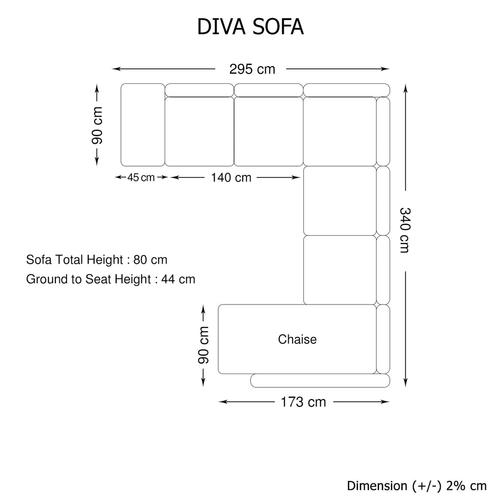 2 Seater: L-140 x W-90 x H-85