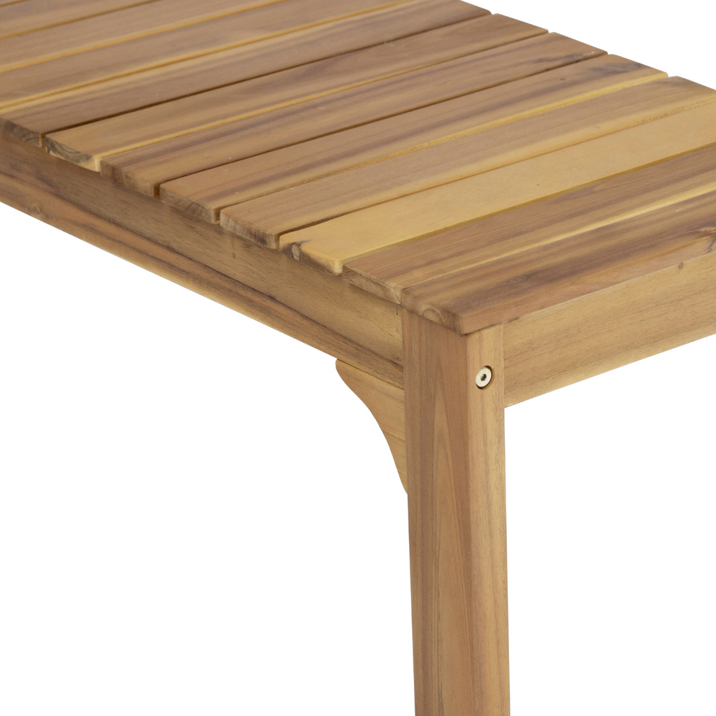 The Luke Outdoor Dining Set is crafted with 100% acacia wood, ensuring that it retains its beauty and sturdiness for many years to come.