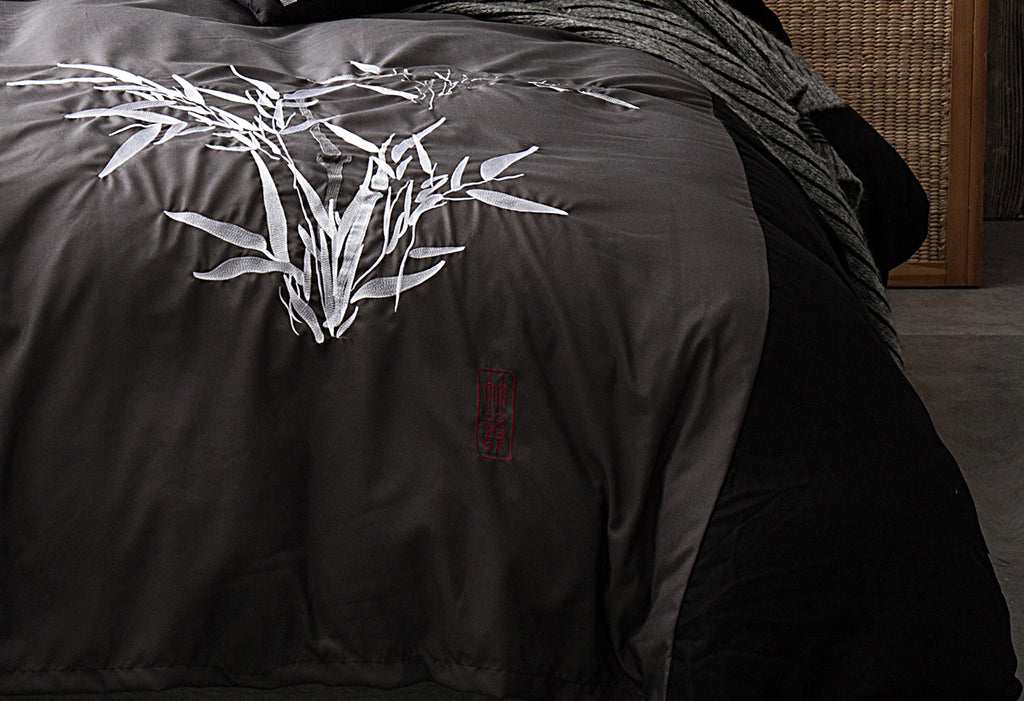 This quilt cover features a design of embroidered oriental bamboo pattern. Whether it's summer or winter, its black and grey colour stays in season year long, whilst its high-quality microfiber construction will stand up to the test of time.