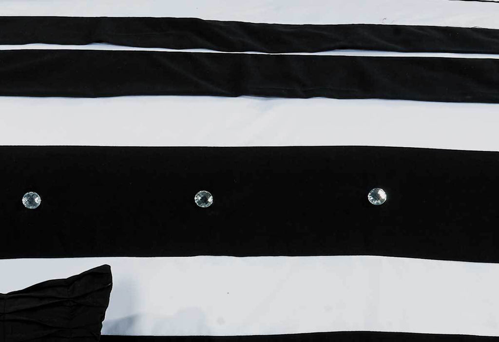 The Black and White duvet cover set makes a strong visual impact with its strong black and white contrast offset with clever striped pintucking. Along the end of your bed you will find the embroidered crystals that convey a statement of luxury and comfort. This duvet cover is perfect for the buyer looking to make their bedroom a luxurious place.