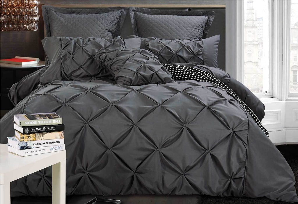 This quilt cover features an extremely luxurious diamond pintuck design that will be sure to add a new level of comfort and aesthetic to your bedroom. Microfibre fabric keeps the duvet silky smooth and breathable throughout all four seasons.