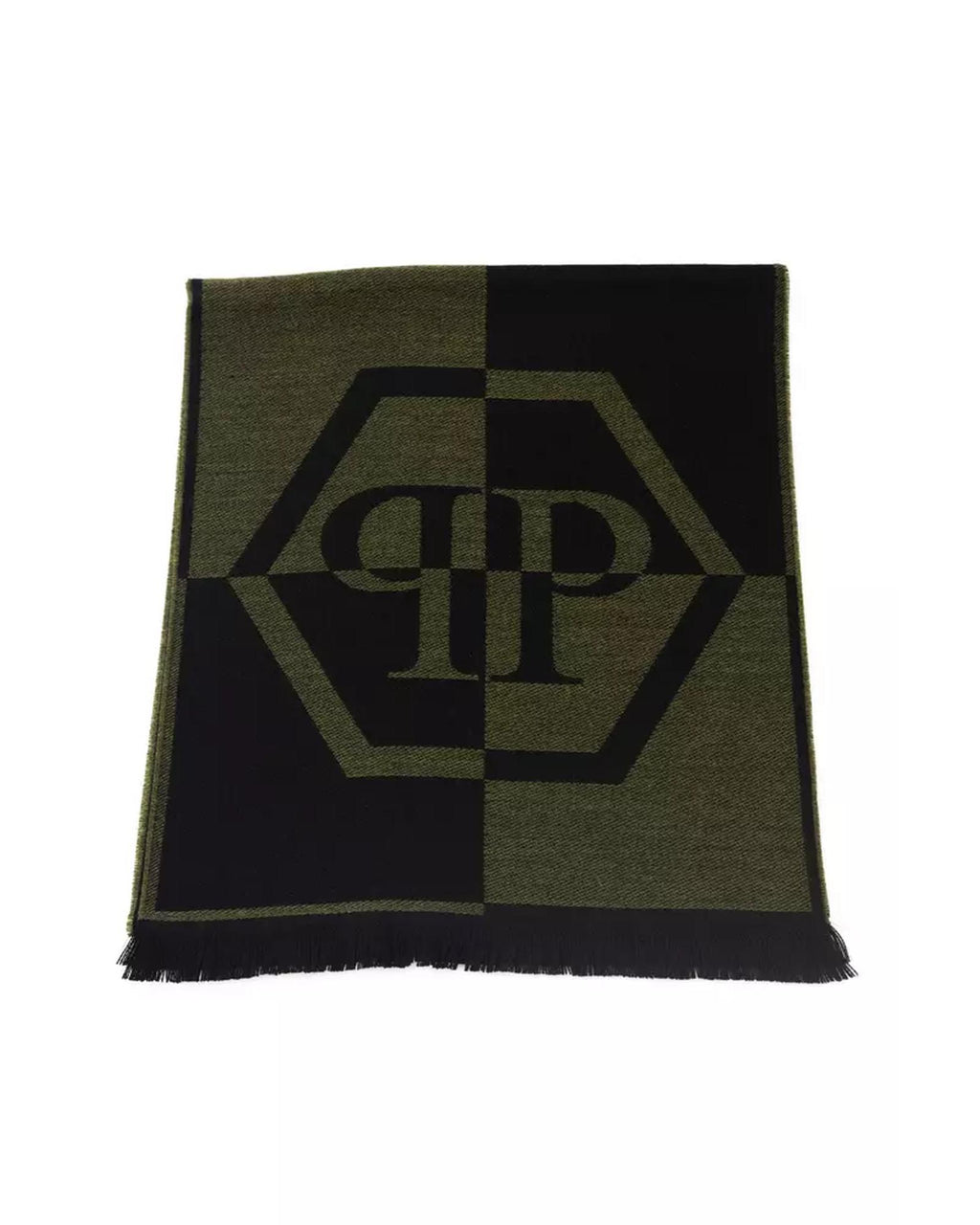 • Green Wool Scarf with Logo and Fringed Hems