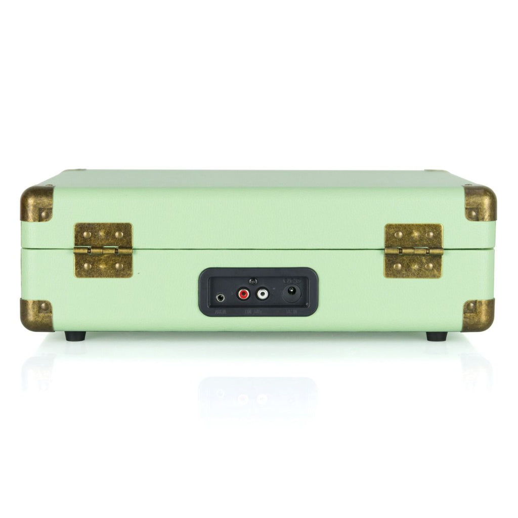 - Timeless retro briefcase-style turntable bound in a leatherette material, lightweight and easily transported.