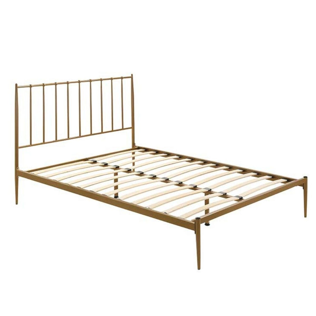 Not the ordinary metal bed base you see daily, this metal bed frame has a fine brass finishing in gold color, in plain English - this bed frame is a upmost sophistication addition to your bedroom. You- be amazed by how simple this bed frame is, yet it transform your entire bedroom and gives a designer feel to it. With strong back support, it is more than a bed frame you can buy in minimum budget. Make a statement with our brass gold metal bed frame.
