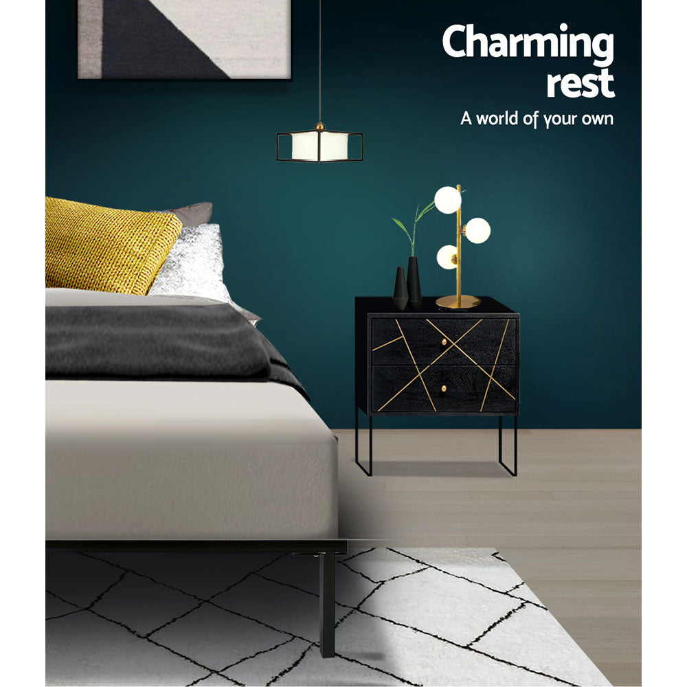 Sleek and elegantly finished in black. Our Ted Bed Frame is truly a stylish addition to any bedroom. Simple in design, the bed frame is constructed in sturdy steel for durability and strength. The black powder-coating lends a sophisticated yet neutral look that will go well with any room decoration. Across the frame, bentwood slats provide good weight distribution as well as ensuring that the mattress stays in place even with every twist and turn of your sleep. Underneath, central support beams further steady the bed under robust use. Not least, you will also find plenty of storage space underneath the bed for those who are space-challenged with their bedrooms. Designed to fit standard size mattresses effortlessly, our metal bed frame is guaranteed to give you pleasant dreams with every sleep.