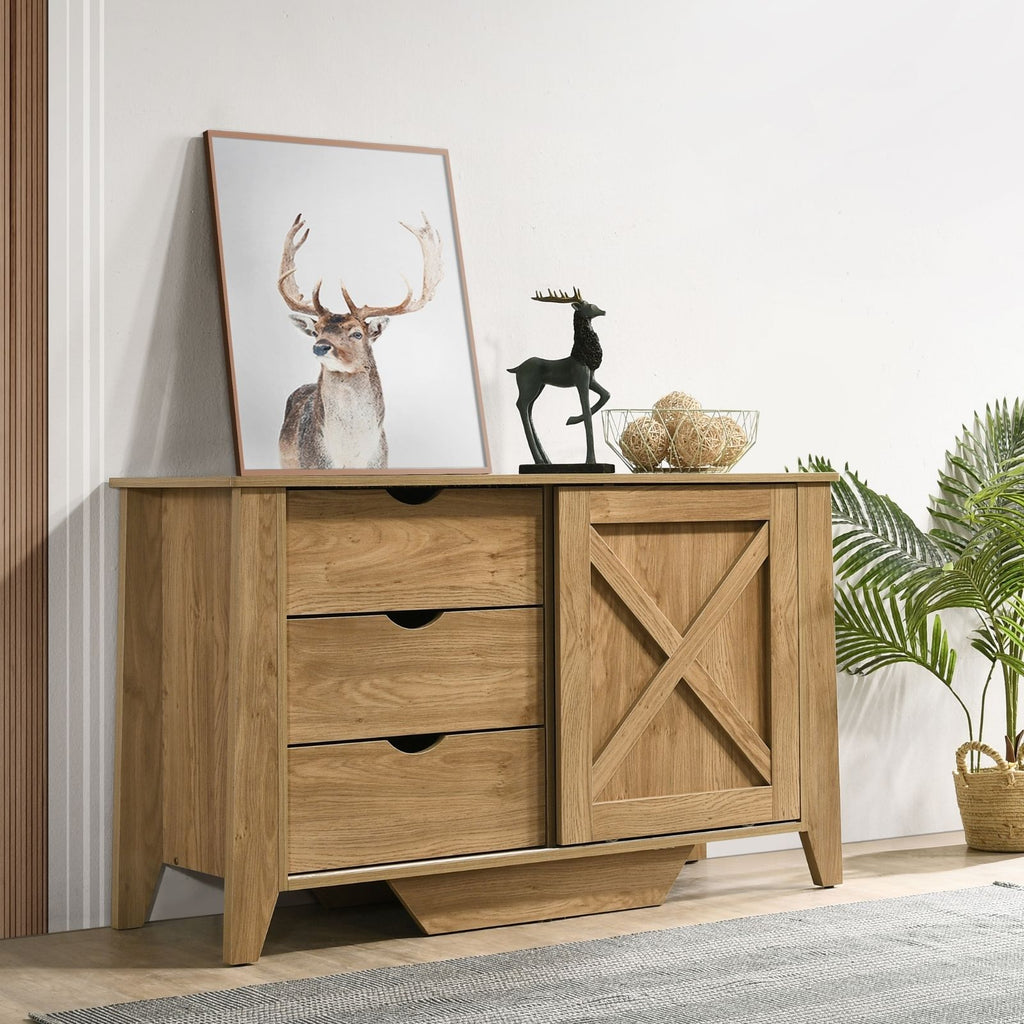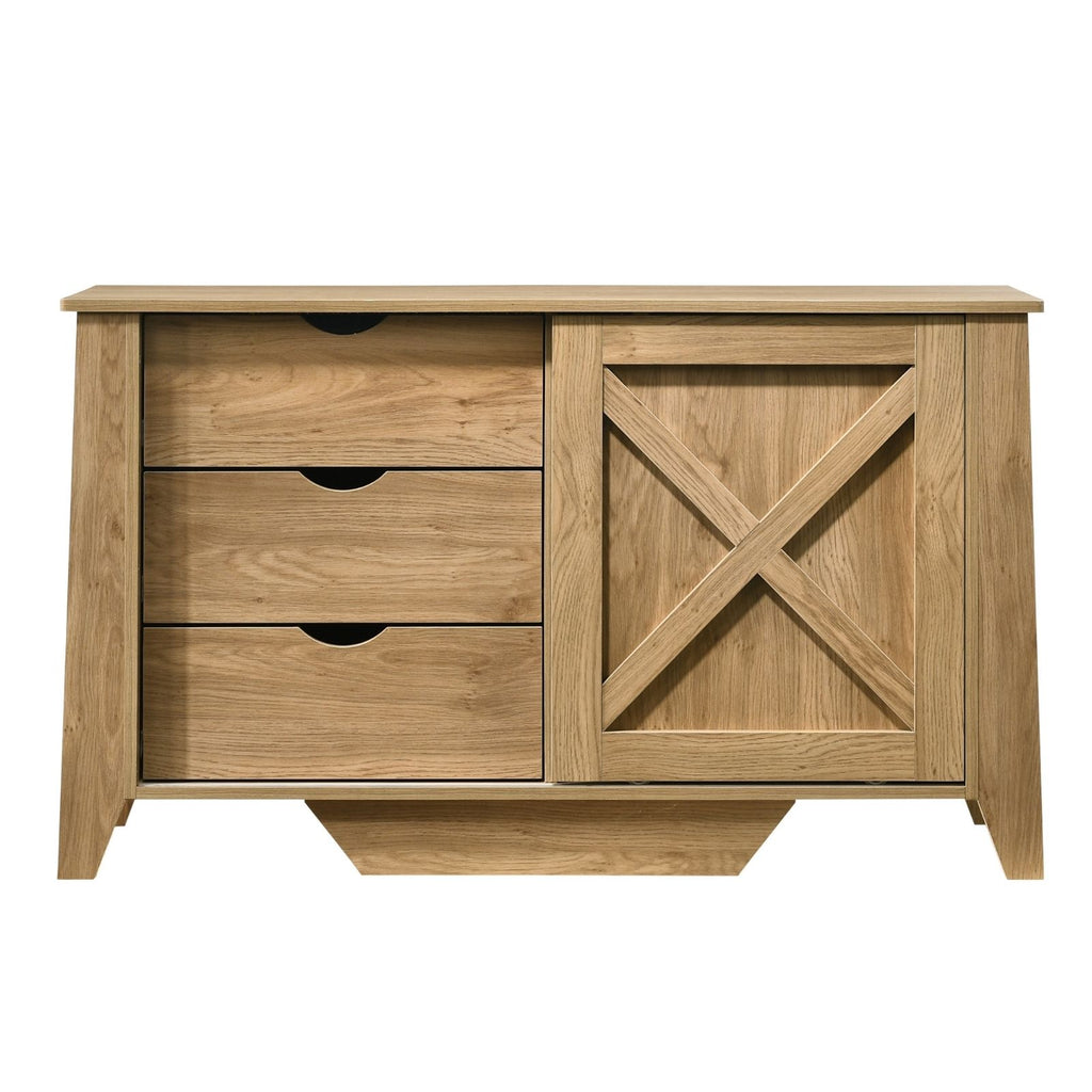 Versatile and sturdy, this sideboard presents a simple and creative way to store things while enhancing your overall living space. Its space-savvy design comes with a drawer and sliding door combo, giving you a wide variety of storage options. Excellent craftsmanship gives this sideboard enhanced stability, as well as rounded edges for safety. The Sideboard completes your barn style home with its earthy and simple look, giving off a classic yet contemporary vibe to your living space.
