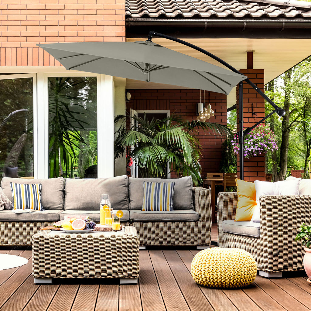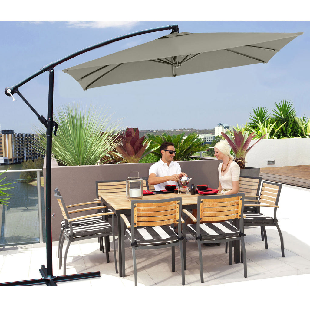 The neutral colour scheme along with its modern design, ensures this umbrella complements almost any outdoor furniture setting.