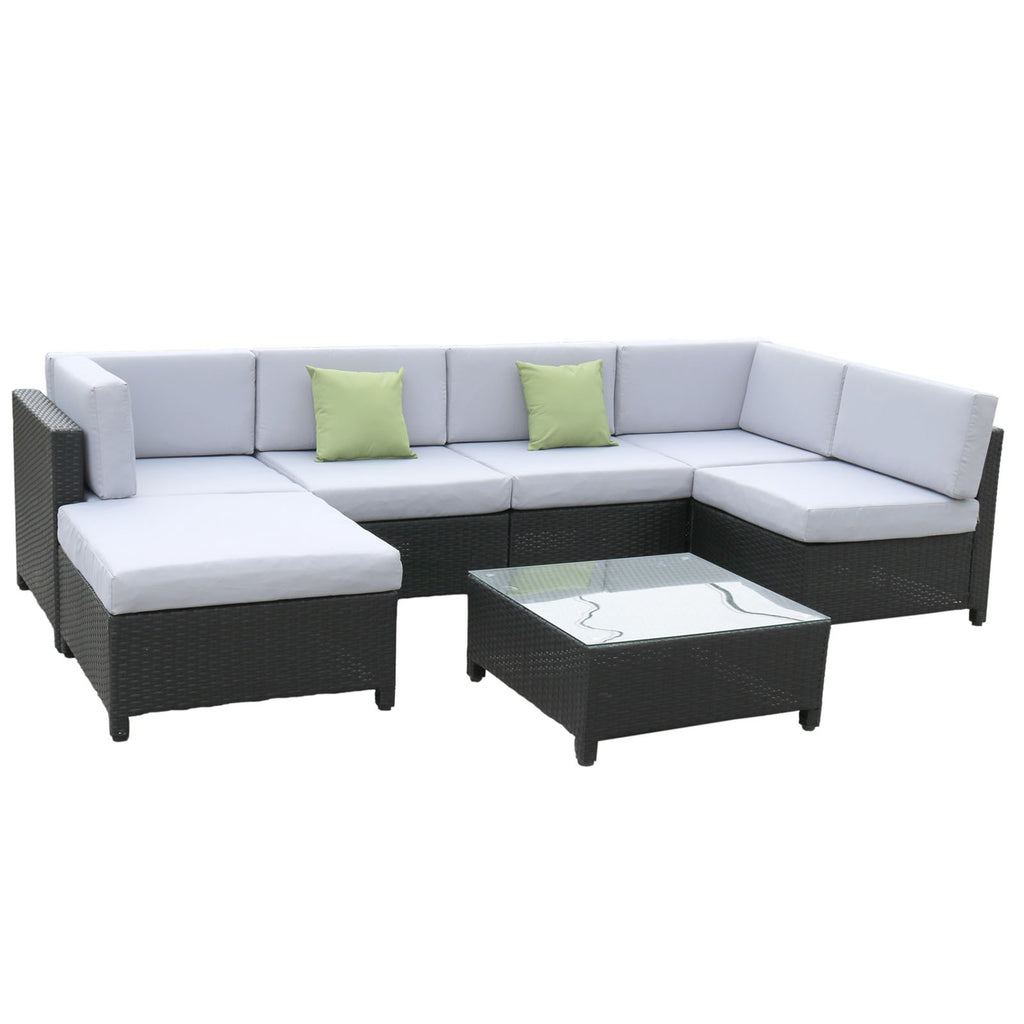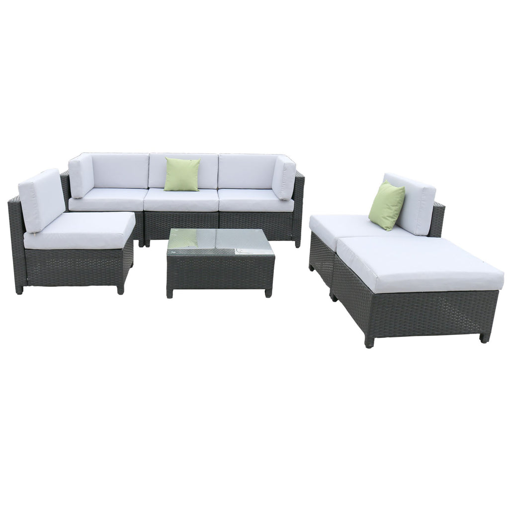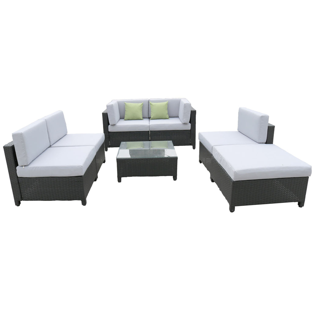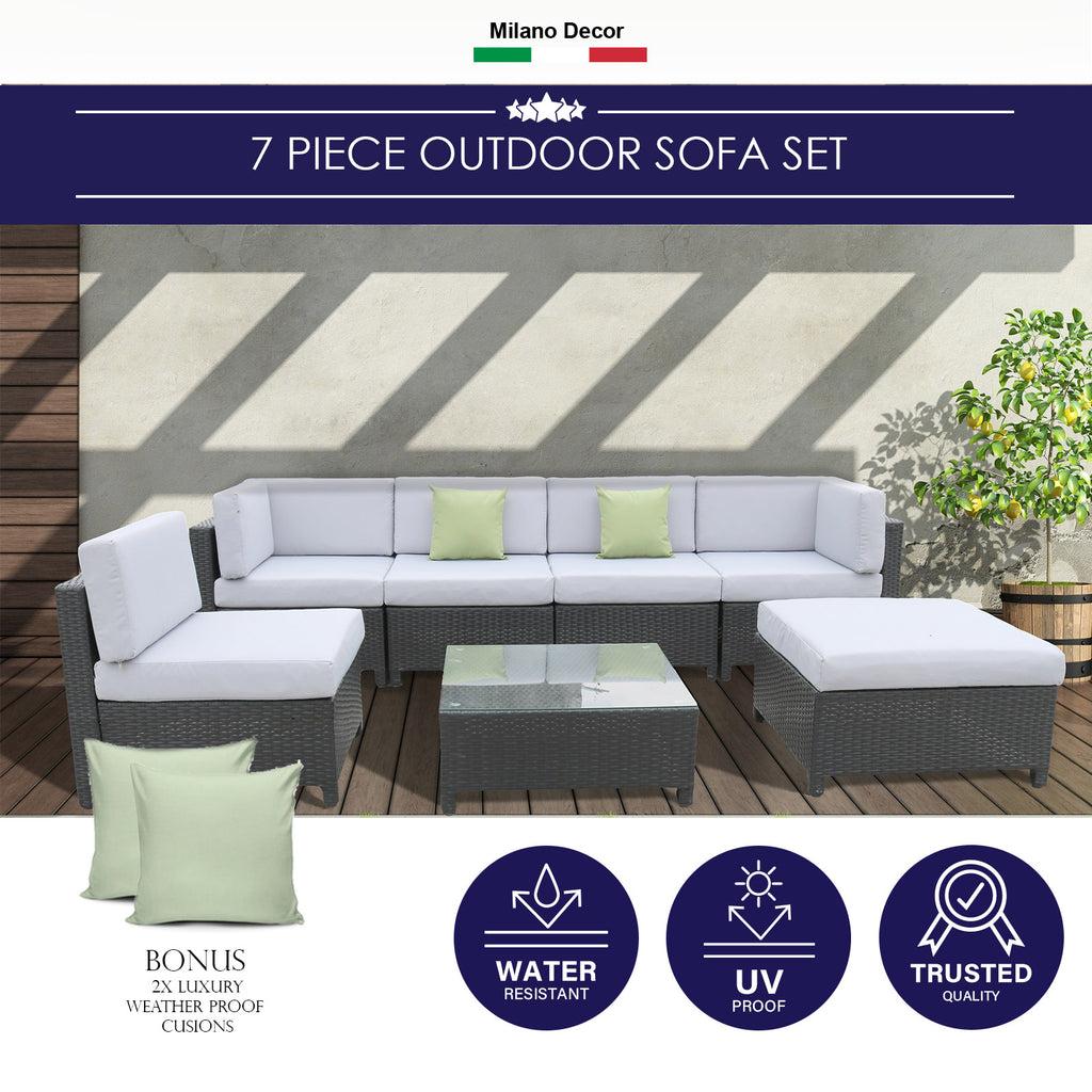 Experience contemporary living and functionality, with the 7-Piece Black and Grey Rattan Sofa Set designed by Milano!