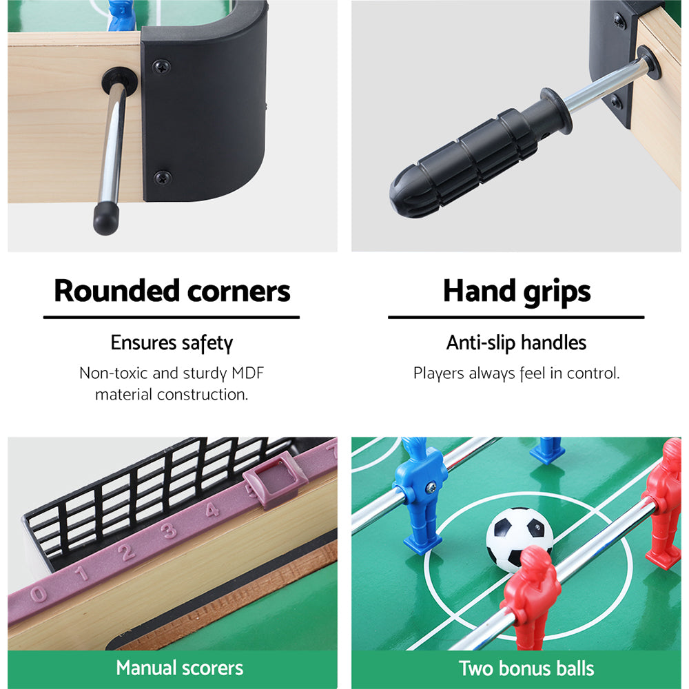 Host a fun-filled game night for your friends and family giving them hours of entertainment with our mini soccer table. It’s perfect for giving your game room or kids’ room an awesome upgrade and will make your family bonding times fun and parties lively. Long-lasting and durable, this mini soccer table is made from a premium quality MDF board. The players are built to be sturdy, and the portable and lightweight design of the soccer table makes it easy to fit in any room without taking too much space. You can even carry it along for a BBQ party, camping trip, or wherever you go. This mini soccer table comes with sturdy players, chrome steel rods with end caps and anti-slip handles, two bonus balls, a convenient score board, and a goal box for a real-like playing experience. No matter how old you are, this game is ideal for people of all age groups. So, without any hesitation, bring this incredible portable mini soccer table to have a great time with friends and family.