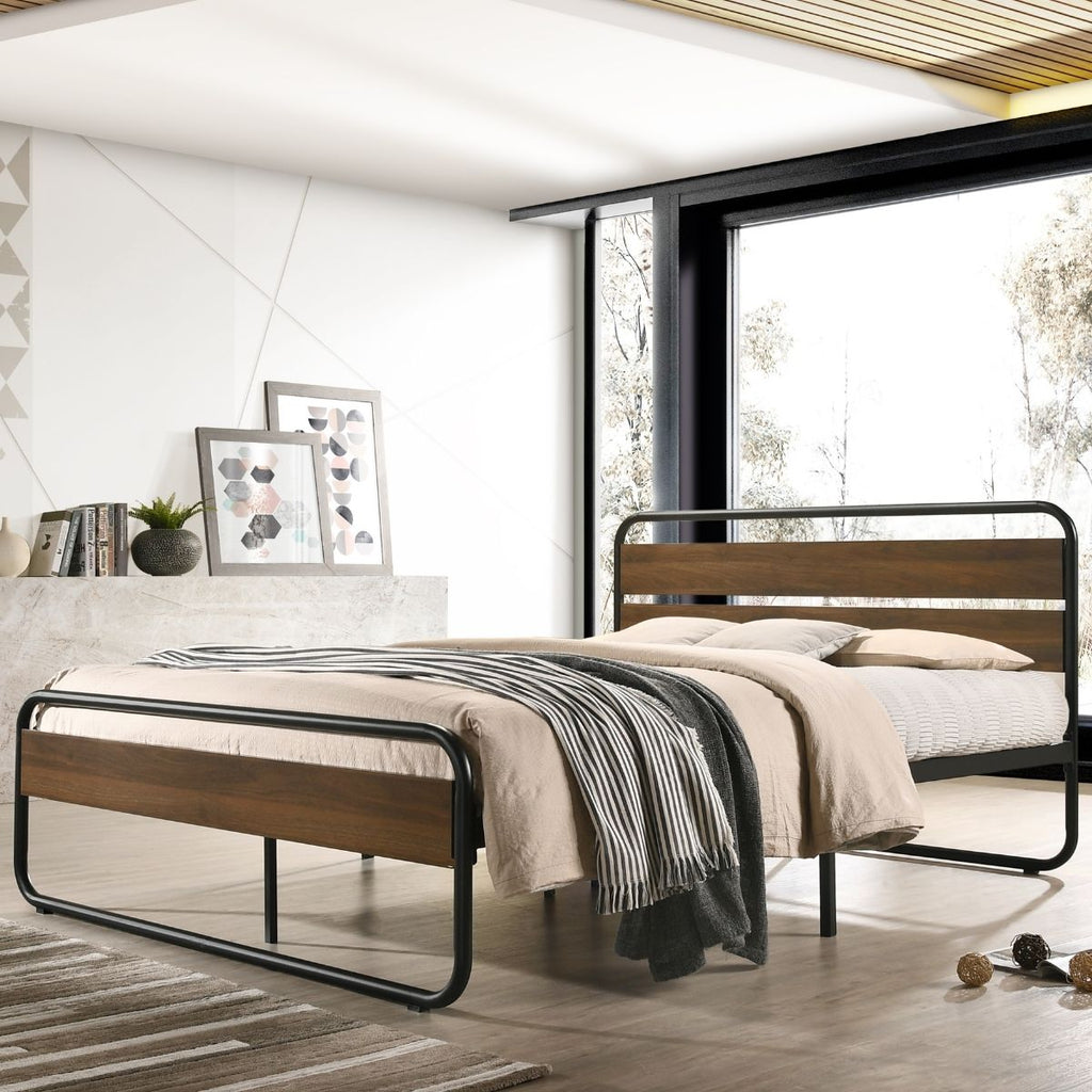 Featuring a sculptural and handsome industrial design, this bed will emulate a trendy loft-style aura in your room with its curved bedhead and bed end.