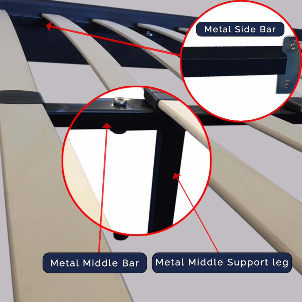 Strong metal joint provides strength & support. It firmly joins the slats with the bed frame so that there remains relatively less chance of breaking down.