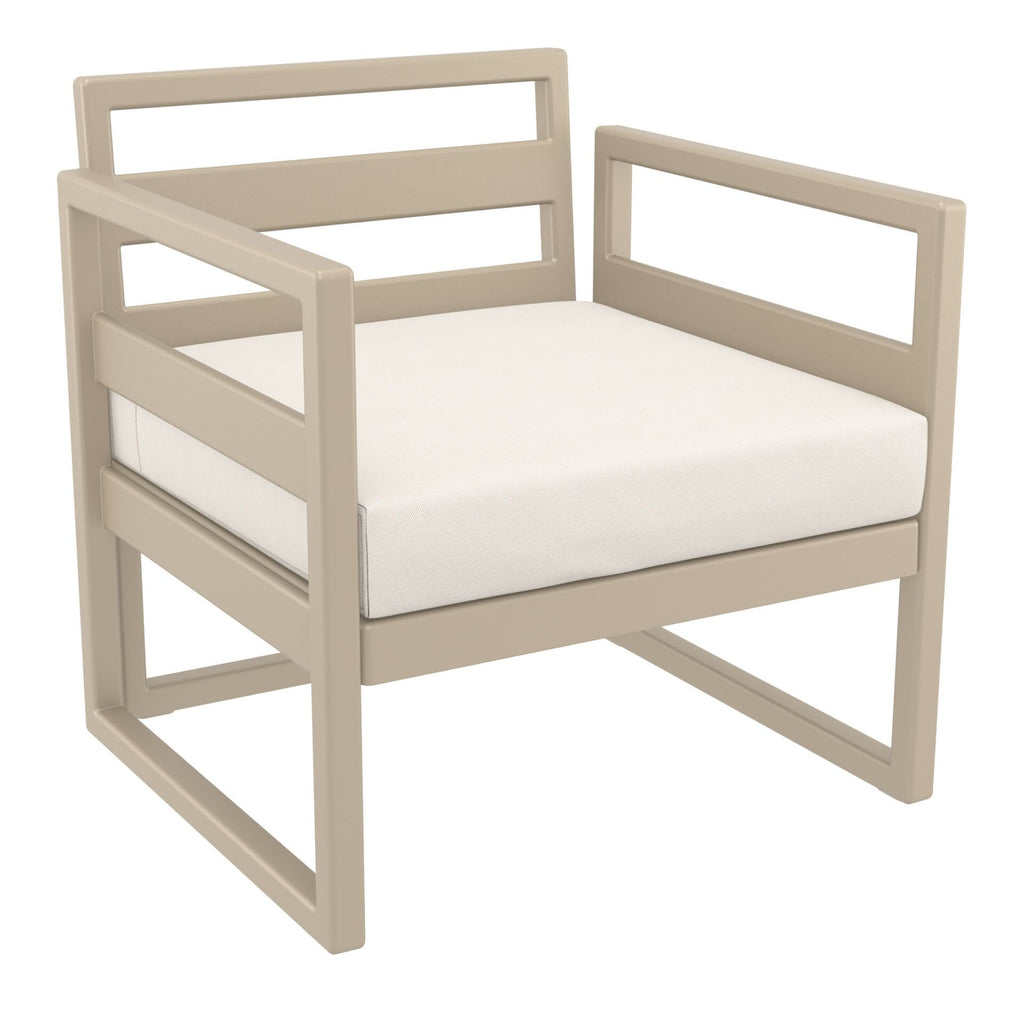 Mykonos Lounge Armchair is designed for easy self assembly, it is made of durable weather-resistant resin reinforced with glass fibre. Non-metallic frame will never unravel, rust or decay. It is UV protected which insures the colours will not fade. Can be disassembled. For indoor and outdoor contract use.