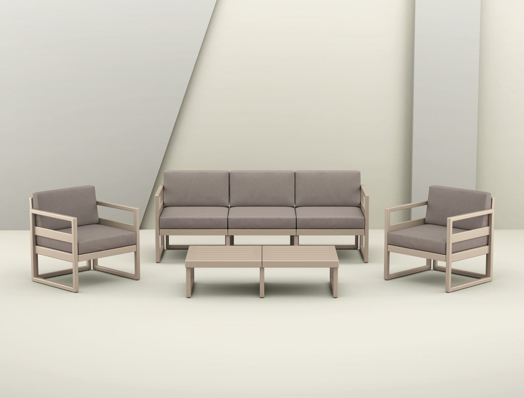 Mykonos Lounge Table XL is made of durable weather-resistant resin. Non-metallic frame will never unravel, rust or decay. It is UV protected which insures the colours will not fade. Can be disassembled. For indoor and outdoor use. The Mykonos Lounge Table XL can be used as a backless seat as part of the Mykonos Lounge.