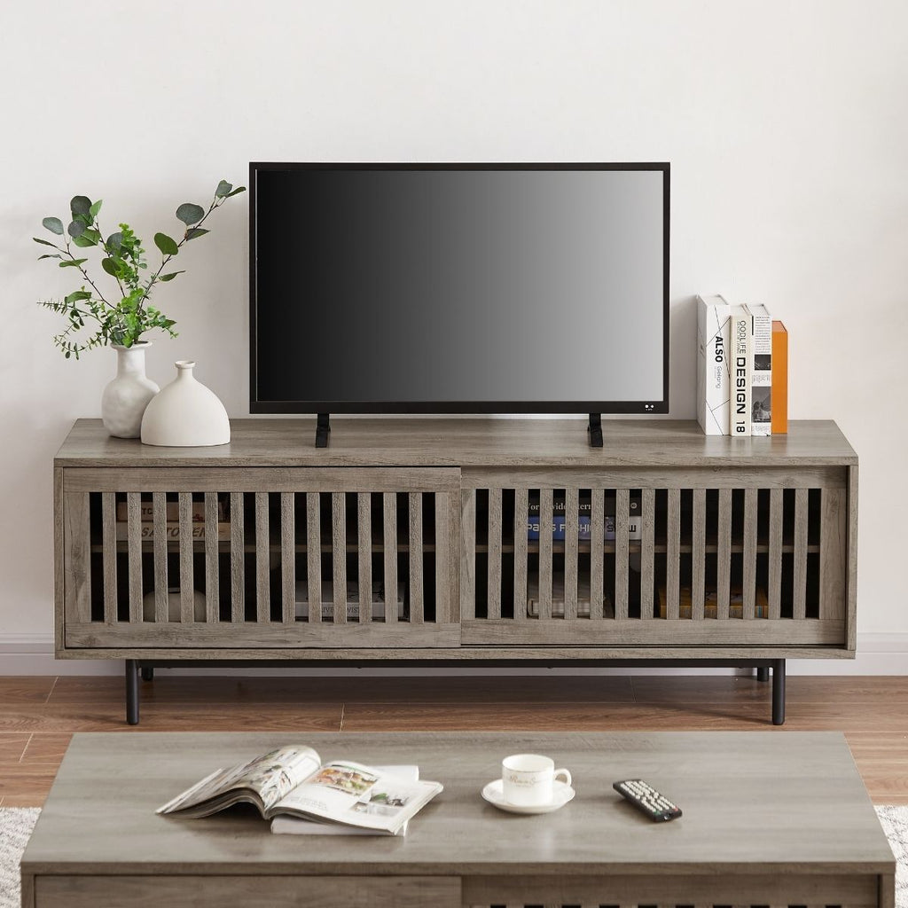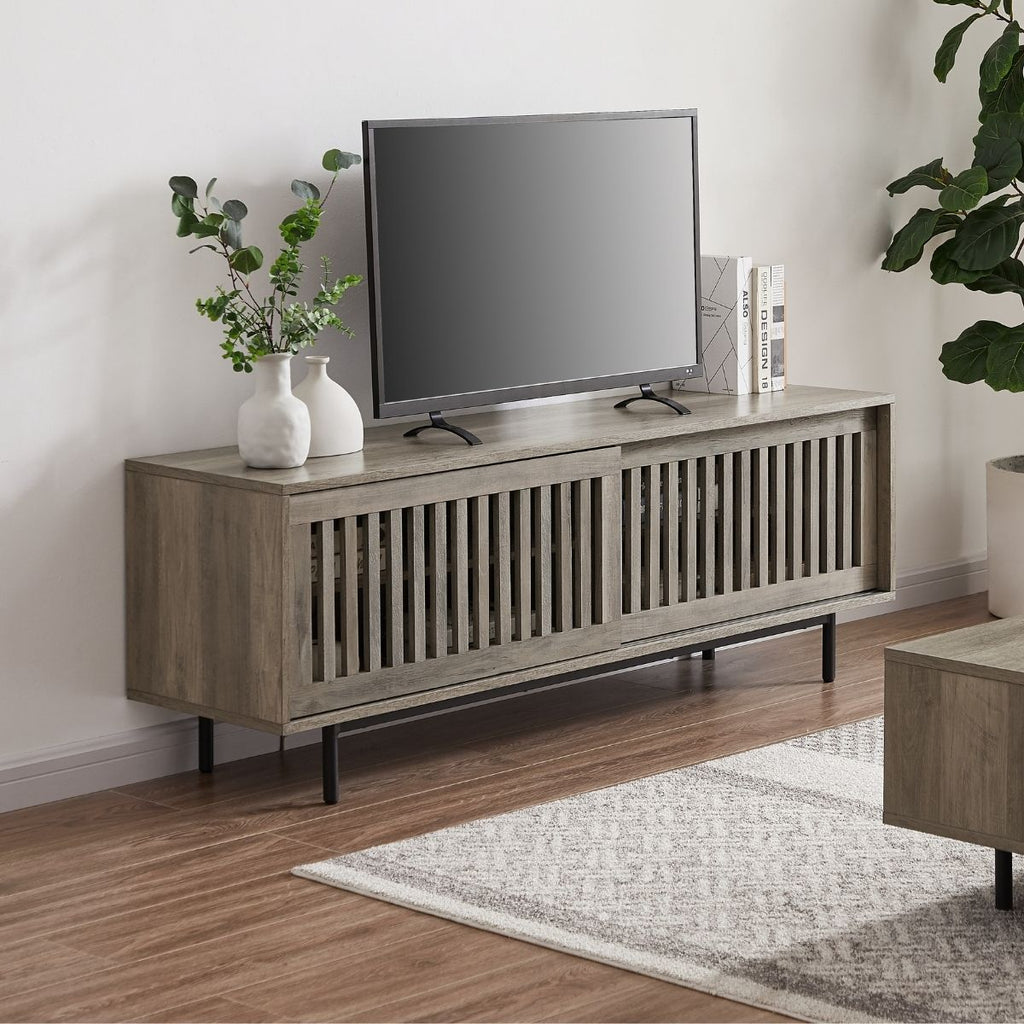 Keep all your entertainment devices, remotes, and other necessities neatly tucked away behind the slatted sliding doors so your living room can look neat and organised at all times.