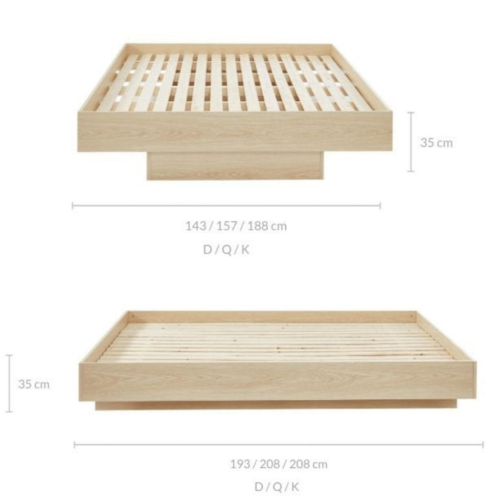 Float in bliss with the homely and stylish FLOATING BED BASE! The recessed plinth base is inward-bound, designed to look like the bed is floating, making the space appear larger. The natural wood frame comes in two neutral colors scheme- WALNUT & NATURAL OAK, and combined with its contemporary minimalist design, this bed base is loved by modernists looking for a simple and monolithic flair to their spaces.
