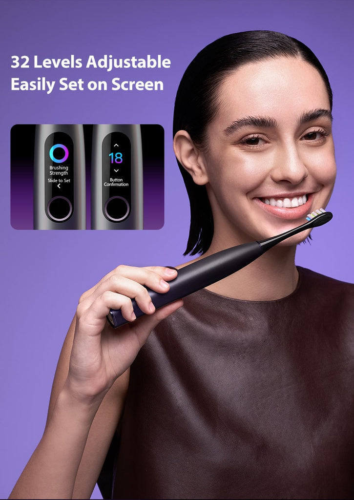 Global innovative 0.96'' color LCD touch screen for easy and intuitive operate. Simply set the mode, level and timezone with a few swipes. Monitor your teeth-brushing quality through the report directly displayed on the screen after brushing. This is the first smart electric toothbrush series to put all the information you need in your palm.