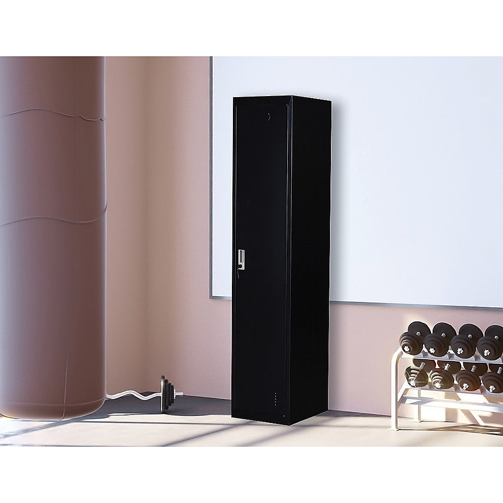 The locker is constructed with solid cold-rolled steel plate for excellent sturdiness and durability, not to mention an attractive look. The steel is also powder-coated to resist corrosion. The locker measures 180 x 38 x 45 cm, and the maximum recommended weight capacity is approximately 30kg. Privacy and security are assured with a simple lock and key design. And there are spaces designated for labels to help identify lockers. Each lock comes with 2 keys.