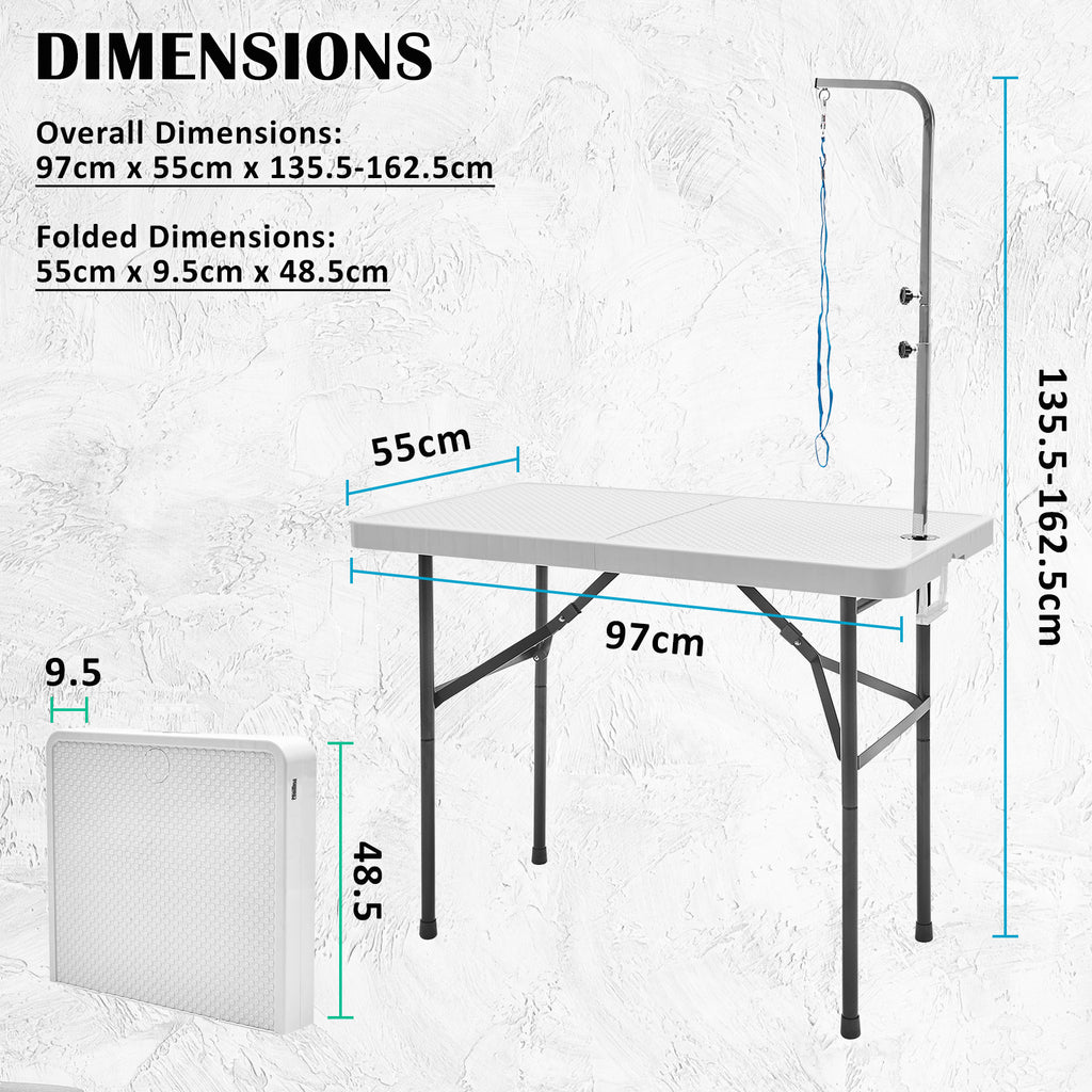 It is perfect for personal, business or commercial use, making it an ideal choice for mobile groomers who need a portable, durable, and easy-to-assemble table for on-the-go grooming services.