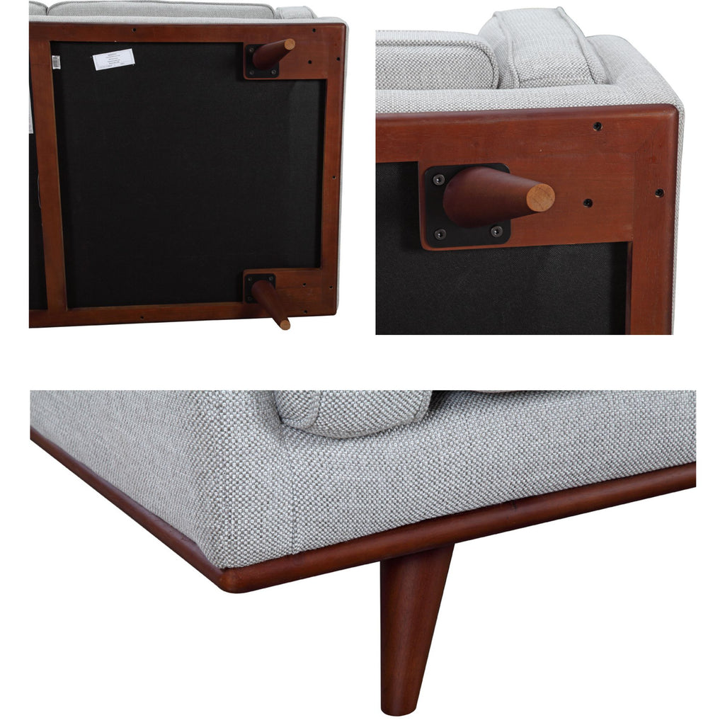 A well-decorated living room immediately draws attention. Place this beautiful sofa, designed in a traditional style, in your living room and give your living area a fresh charm. The 2-seater sofa features a slimline frame with separate back and seat cushions. It has extra cushioning on either side for added comfort. It also features a solid timber plinth in a smoky grey colour and beautiful tapered legs. The beautiful furniture piece has piped seam detail and it is upholstered in 100% Polyester fabric in Grey. The colour blends easily with any interior decor style. The stunning sofa also features high-density foam, pocket springs, and U-shaped springs that ensure complete relaxation for the body. The structural frame of the sofa is made of sustainably harvested Eucalyptus Solid Wood and Plywood, which gives it the internal strength and resilience it requires. The frame has a five-year warranty; the foam and springs have a three-year warranty; the fabric and stitching have a one-year warranty; and all other parts have a one-year warranty.