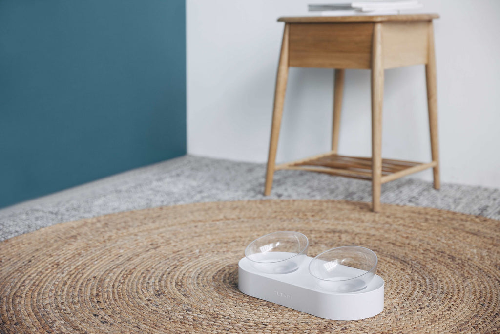 15° elevated adjustable cat feeding bowl, proven to significantly improve digestion by requiring pets to sit upright while eating.