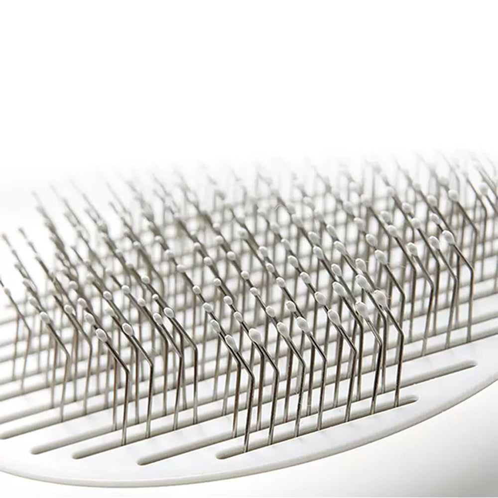 Its built-in massaging bristles help stimulate the skin while being used, preventing hairballs, dry skin and flaky coats.