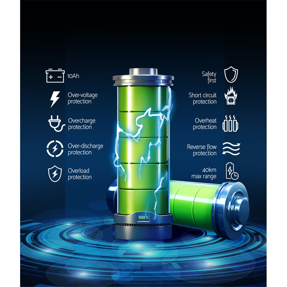 For effortless riding, look no further than our Phoenix Electric Bike. With its 10Ah lithium-ion battery, this astounding electric bike can really go places with as far as 40km on a single charge. The ever-dependable 250W brushless motor can deliver a maximum street-legal speed of up to 25km/h for every cycling activity. Built to last, the bicycle features an aluminium alloy frame that is lightweight and yet strong and sturdy. Better still, the electric bicycle is also loaded with a host of useful features that makes riding it a pleasure. Such as the high-quality Shimano 6-speed shifter mated to large 27"tyres for smoother cruising, thick cushioned seat for extra comfort, front and rear disc brakes for more effective braking and not least, front fork suspension that makes going over rough terrain a less jaw-juggling prospect. At the back, a strong bag rack ensures firm storage while an LED headlight makes night riding as clear as day. With the Phoenix electric bike, getting there is so much more enjoyable with every destination.