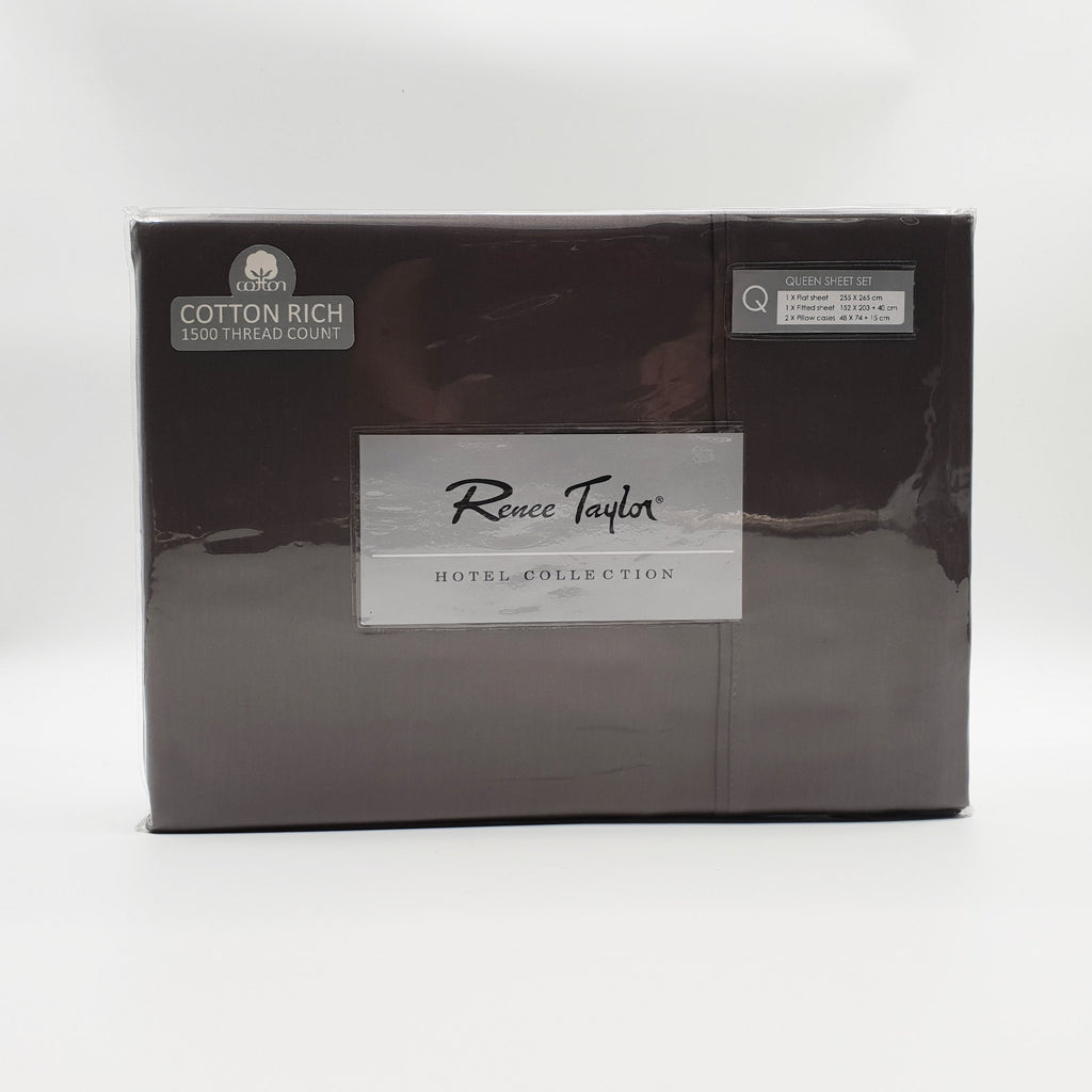 Renee Taylor 1500 Thread Count Pure Soft Cotton Blend Flat & Fitted Sheet Set Dusk Grey Queen