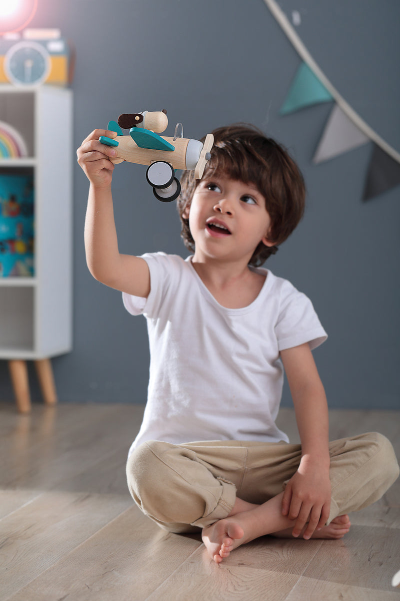 Medium sized, natural timber, retro styled, single wing plane with cute dog driver and rubberized wheels. Kids will have a ball imagining the stunts this daredevil pilot could do. Beautiful, yet sturdy enough to play with. Available in red or green.