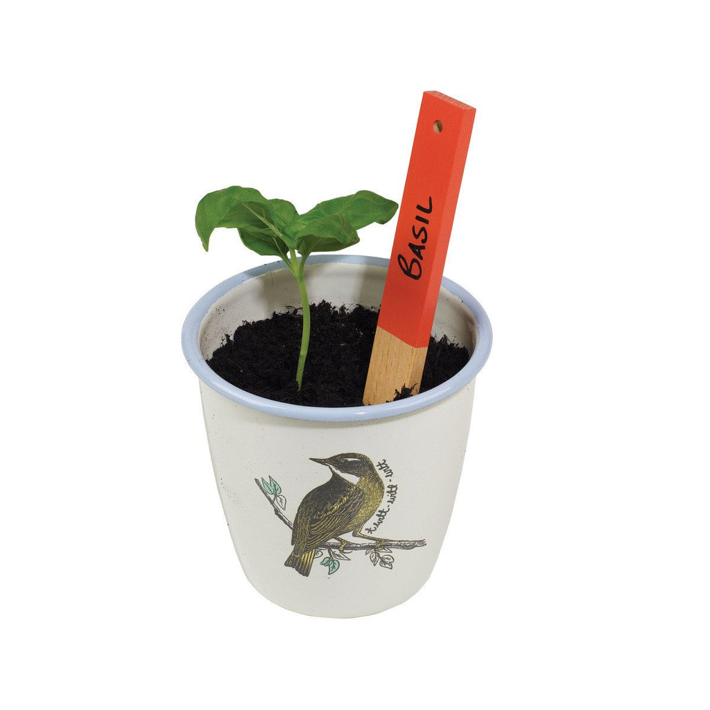 - Material: Dip painted wooden seed markers designed by Rob Ryan