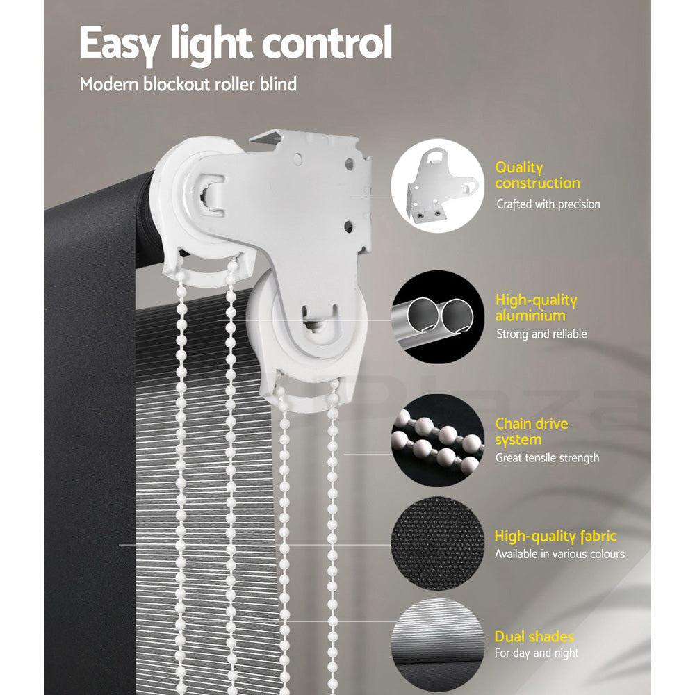 Bright sunlight disturbing your sleep? Want some privacy from the nosy neighbours? House too hot in summer? Then our 2-in-1 Dual Blockout Roller Blind is perfect for you. It solves all your problems in stylish modern fashion.