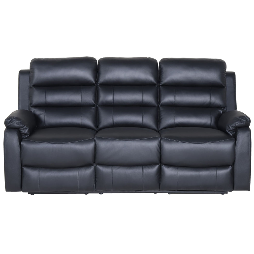 This awesome lounge setting, which includes two single-seater electric recliners and one three-seater lounge with two electric recliners and one comfortable armless chair, transforms your living room into a cool, relaxing resort. Its grandeur is enhanced by a magnificent black shade. The lounge setting, designed in the modern style, is an epitome of brilliant craftsmanship. It features a modular setting that consists of a left-arm electric recliner, an armless chair, and a right-arm electric recliner. It has a USB charger port for your devices. It also features generous seating and back cushions for neck and lumbar support, high backs, and wide pillow top arms. The lounge is upholstered in super-comfy thick leather.The lounge's seat and back cushions are made of high-density foam, which gives them a welcoming look and a long-lasting shape. Thick foam, webbing, pocket springs, and S-Springs ensure added comfort. The lounge's hard plastic foot pad prevents its lower parts from scratching or damaging the flooring. The entire structural frame of the lounge setting is composed of plywood and solid wood, giving it the strength, it needs. The frame has a five-year warranty; the foam and springs have a three-year warranty; the fabric and stitching have a one-year warranty; the recliner mechanism and electric parts have a one-year warranty; and all other parts have a one-year warranty.