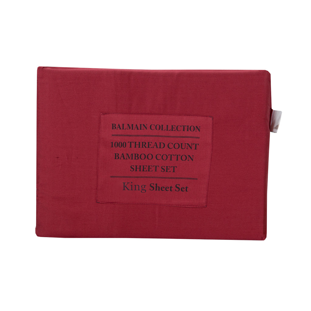 Royal Comfort 1000TC Balmain Hotel Grade Bamboo Cotton Sheets Pillowcases Set - King - Bordeaux