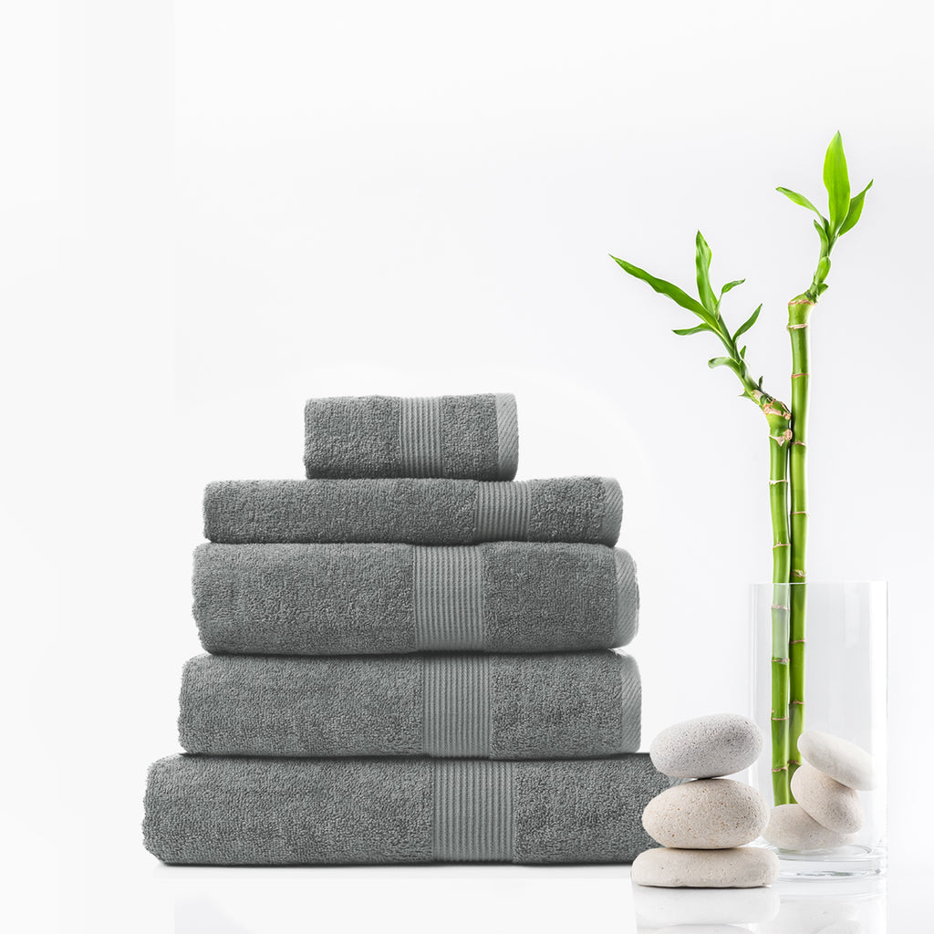 Royal Comfort 5 Piece Cotton Bamboo Towel Set 450GSM Luxurious Absorbent Plush - Charcoal